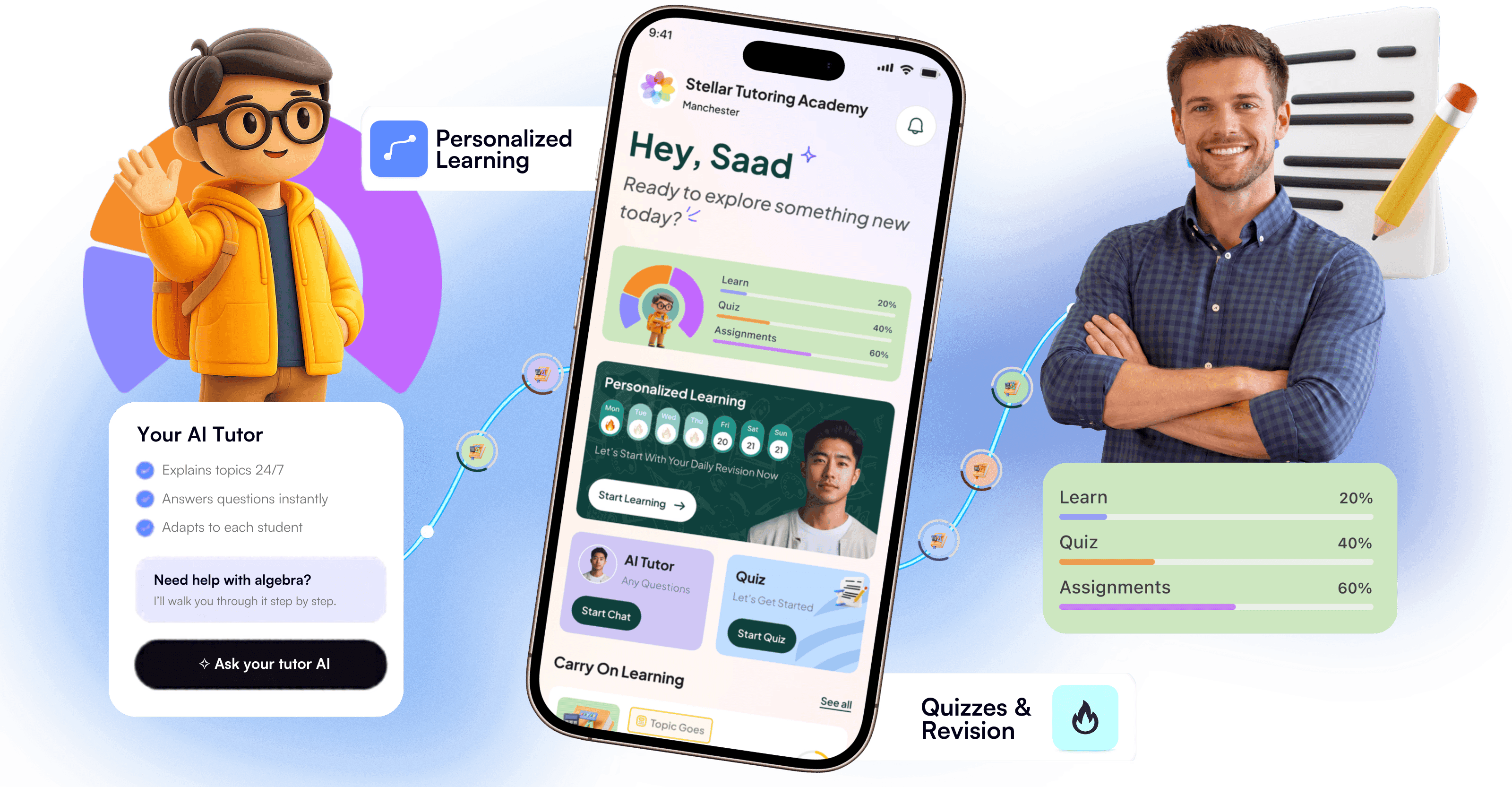 Modernise tutoring, boost student engagement, and deliver 24/7 support, all through your very own learning app.